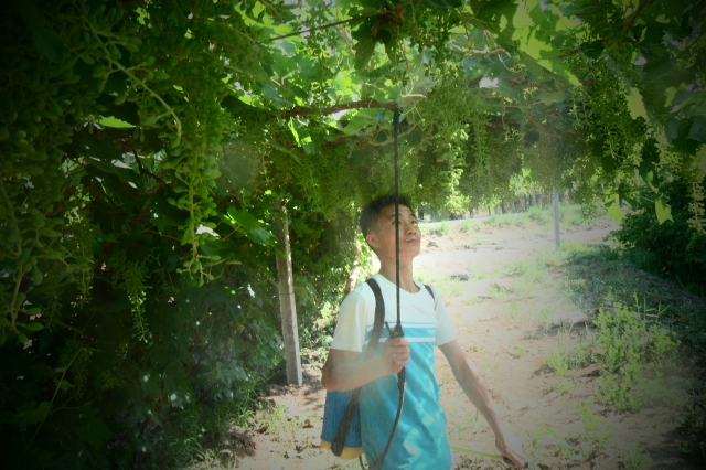 (二)向难题求突破,成为连队建设的领头人。甘小东把为连队办实事、谋利益作为自己工作的重点,努力找准发挥作用的切入点,吃苦耐劳、坚韧不拔,克服重重困难,使八连在几年内发生了很变化。由于吐鲁番地区高温、干旱、少雨的极端恶劣气候,造成了此地区农业用水极度匮乏,来到连队的第一年,就发现每年的6月至7月就会造成农业用水紧张,这已成为职工的心病,而造成这个情况的主要原因是连队浇水渠道战线太长,加之很大部分渠道均为土渠道渗水十分严重,造成水资源的极大浪费。为解决这个问题一方面积极与连队党支部及团领导积极协商、协调解决。最终2015至2016年由团出资连队出工共同将连队8公里渠道防渗修缮完成,同时根据实际出发重新修订了连队浇水制度,用水高峰期连队干部职工带班查水,保证科学合理用水,极大的改善了连队农业用水现状,解决了职工的心病。由于连队种植葡萄已有30多年历史,大部分的葡萄架面已经是腐朽不堪,很难满足葡萄生长和生产的需要。同时连队葡萄老架面在劳作过程中费工费事,已经很不适应现在葡萄生产的发展, 面对这种情况,他积极协调争取架面改造的项目,并挨家挨户耐心细致地做思想工作,经过近几年的耐心协调,样板示范,争取资金60余万元,妥善解决了42户职工架面老化的问题。