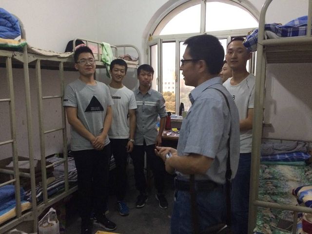 听说老师们前来看望,同学们很快围拢过来,你一言我一语地回答着。蓝燕飞老师嘱咐大一新生们要把宿舍当成自己的家,在生活上相互关爱,在学习上互相帮助,养成良好的生活学习习惯,珍惜大学时光,做到生活愉快、健康成长。同学们都纷纷表示一定会以饱满积极的态度迎接自己的大学生活,奋发图强,认真学好专业知识,增长才干,不辜负学院的期望。