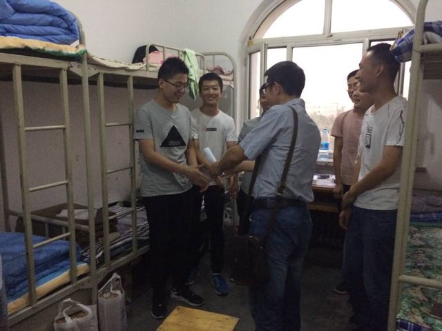 9月10日晚八点,在新学期开学之际,新葡的京集团35222vip学办主任蓝燕飞、辅导员李婧媛、班主任庄丽、黄刚、程勇翔和陈福龙老师走访了2017级新生宿舍,对新到来的同学进行了慰问。老师们详细询问同学们来自哪里、饮食上是否适应、生活上能否习惯及入校后的感受等情况,同时还认真查看了宿舍里的各项设施是否完备,叮嘱新生们要具备安全意识和防骗意识,尽量减少现金消费,多使用安全便捷的校园卡。