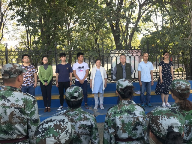 9月19日上午,新葡的京集团35222vip院长王绍明,学班主任蓝燕飞,新生辅导员李玲以及新生班主任和学生会干部一起到中区操场看望慰问2017级参训新生和军训教官。