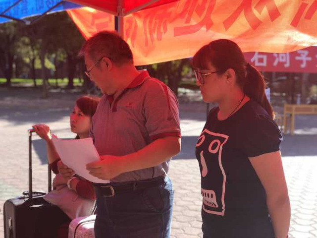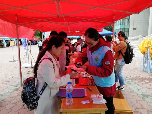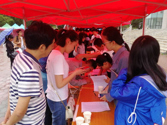 迎新点的桌子排成一列,一边是新生在办理手续。一边是工作者在热情服务。按照报到程序,首先是易班扫码确认报道。接下来是收取录取通知书、学生档案和团员档案,填写完体捡单后领取校园卡和钥匙,最后收取军训费用。工作紧张进行着,每个工作人员不敢有半分懈怠,工作进展的迅速而有序。