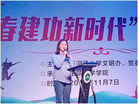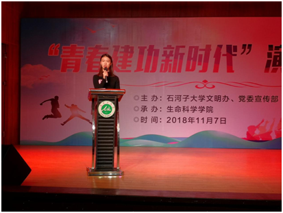 我们每个人都是这样社会大机器上一颗小小的螺丝钉,虽然渺小,但我们要在这个世界上永远不忘初心,永远嫉恶如仇,每个人都可以努力进取奋发向上。我们不是来适应世界的,而是来改变世界的。当今青年应该有理想、奋发向上,新时代的我们要为中华之腾飞而努力!2018级本科生蔡茜茜在演讲中为青年人的崛起而呐喊!