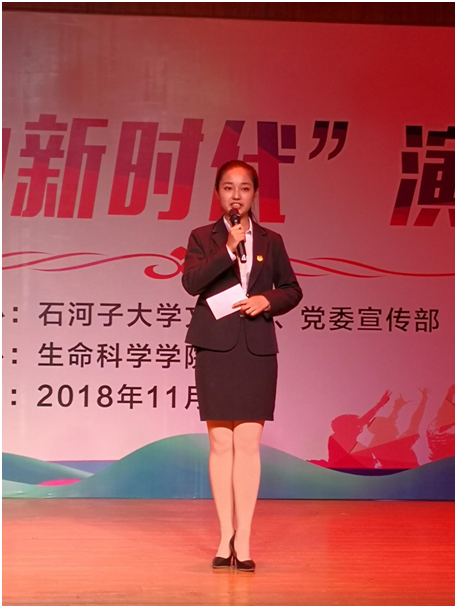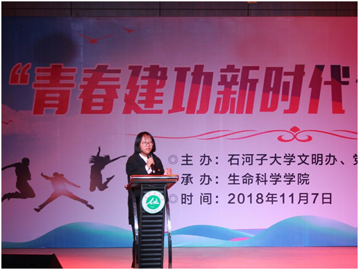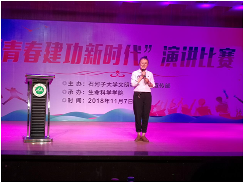 十五号选手是2018级本科生何泽纯为我们带来《青春与时代》的故事。经历过高三的残酷训练,她从迷茫到找到了方向,由牙齿生成实验而受到启迪让她爱上了生命科学。担当在先,奋斗在先,肩负起我们的责任,为了我们的新时代,捋起袖子加油干吧!