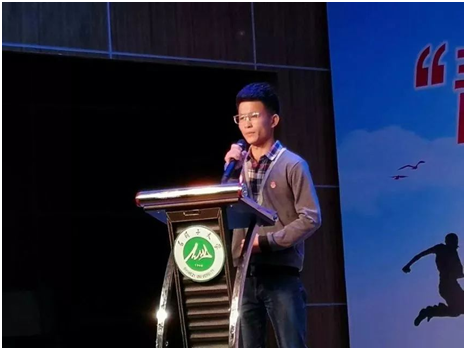 我们很渺小,但我不服气,我要被铭记;不怕说有野心,要做搏击少年,年轻就是资本。我们正值青春,就要去努力,去奋斗。国家的希望在我们身上,责任在我们肩上,我们需要努力,让世界知道我们是中国青年人。蔡兴财同学的演讲给人以极大的震撼力,告诉我们青年人背负着振兴中华的历史使命,要敢做、敢闯、敢于尝试,18级新生蔡兴财发出青年一代的呐喊。