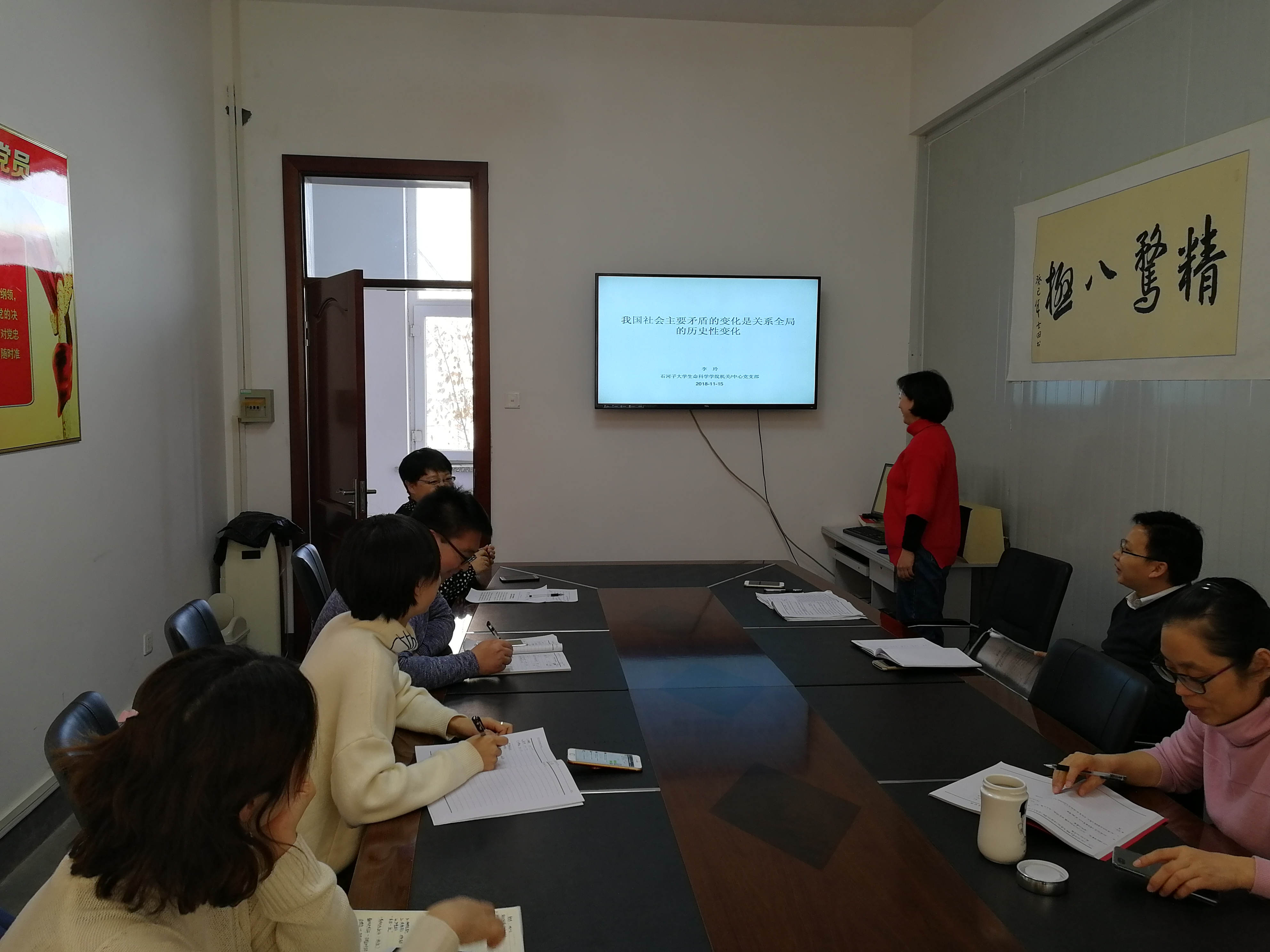 会议首先由李玲同志引领大家学习习近平《新时代中国特色社会主义思想三十讲》中的《我国社会主要矛盾的变化是关系全局的历史性变化》篇章,她结合实际,例举我国主要矛盾在各个历史时期的变化,并通过丰富的实际案例讲述主要矛盾的变化,反应了时代和实践的要求。作为高等教育的一线教师,我们在面对变化的过程中,应该坚守党的信念,紧跟国家发展政策为国家输送人才。蓝燕飞、黄刚同志对此发表感言,他们说“时代在变化,教育是社会发展中重要的一部分,我们必须下功夫充分认识这一变化,把它运用在工作中,解决生活与学习中遇到的问题,内化为我们教书育人的正能量!”
