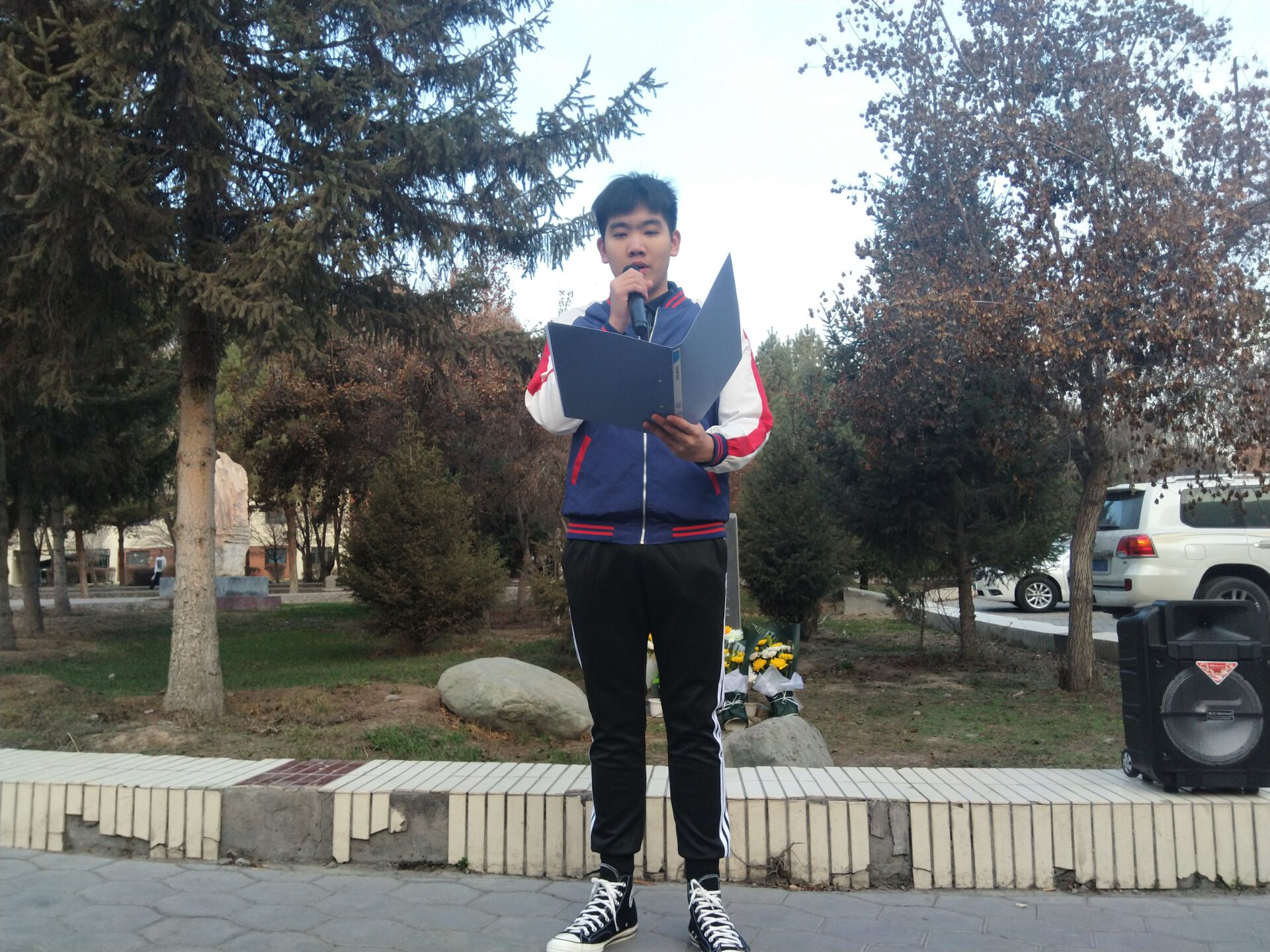 在杜渊浩同学的演讲中,孟二冬老师恪尽职守,呕心沥血的形象在同学们的心里再一次浮现出来。孟二冬老师,他留下的是爱和感动,在剧烈的咳嗽声中,在同学们的掌声和泪花中,他倒在新葡的京集团35222vip的讲台上。他从几千公里外的北京大学来到新疆对口支教,把他的学识、品格、精神留在了两所学校,也把传道、授业、解惑的为师之道留在了广袤的祖国大地上。孟二冬老师用他平凡而又不平凡的一生,完美地诠释了一个师者与学者的神圣使命。