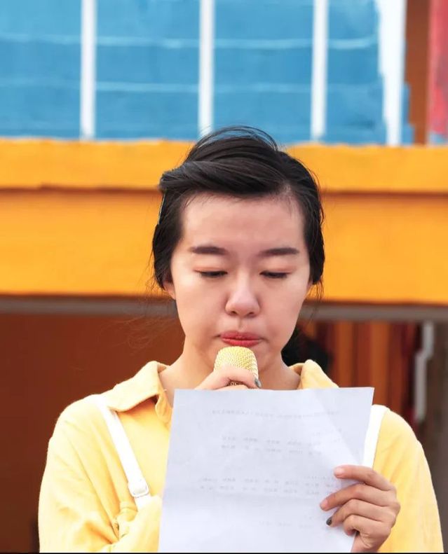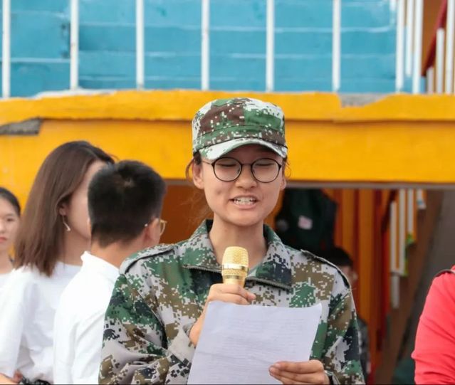 随后,由新生代表高柯轩进行发言。她讲到自己在这次的军训活动中学到了很多,知道了坚持的重要性。她表示自己以后也将以对待军训一样的严格态度来对待以后的生活,严于律己。坚持“流血流汗不流泪,掉皮掉肉不掉队”的态度。