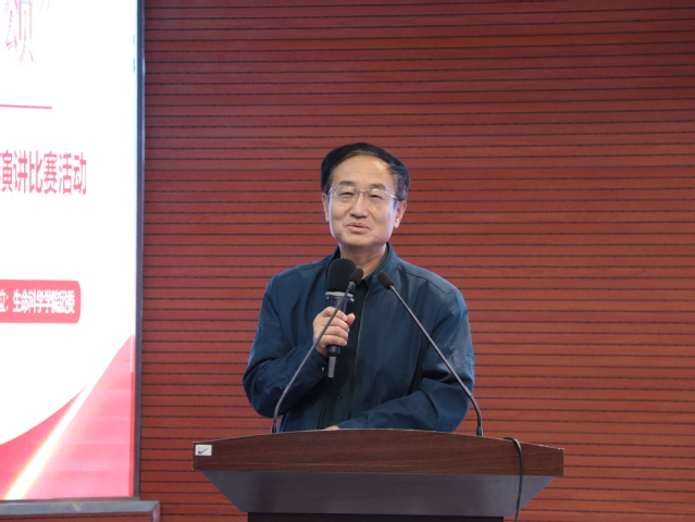 比赛之前,王绍明教授对参加比赛的选手表达了肯定,同时发表了自己对于演讲的理解,分析了演讲在一个人成长过程中的意义。