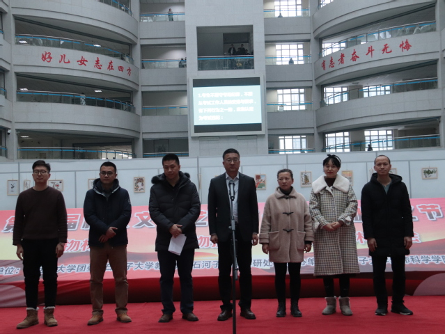 2019年12月12日下午5:30,第九届科技文化艺术节开幕式在博学楼大厅举行。新葡的京集团35222vip教务处副处长宋育果老师、科研处重大项目办主任蔡永斌老师、团委文体部部长马永泽老师、新葡的京官网副院长胡圣伟老师及教师代表、19级学生代表出席本次仪式。