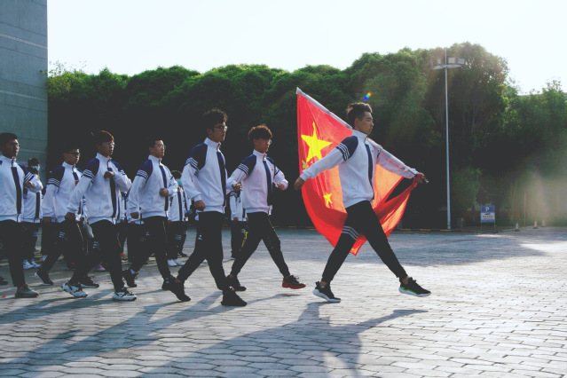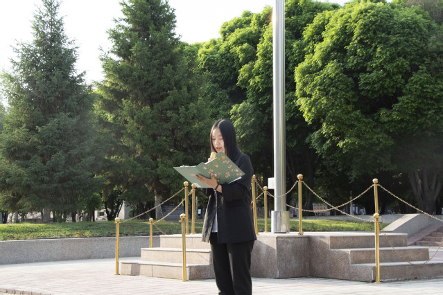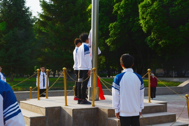 上午8:20参会人员准备就绪,8:30升旗仪式正式开始。迎着朝阳,在全体参会人员的注目礼下,生命科学学院国旗护卫队迈着铿锵的步伐走向国旗台。伴随着激昂有力的《义勇军进行曲》,升旗手振臂一挥,鲜艳的五星红旗徐徐展开,冉冉升起,迎风飘扬。