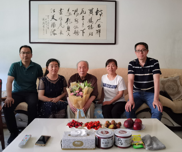 6月18日,生物技术系支部书记王爱英、系主任闫洁到退休20多年的老教师莫庸家里慰问。