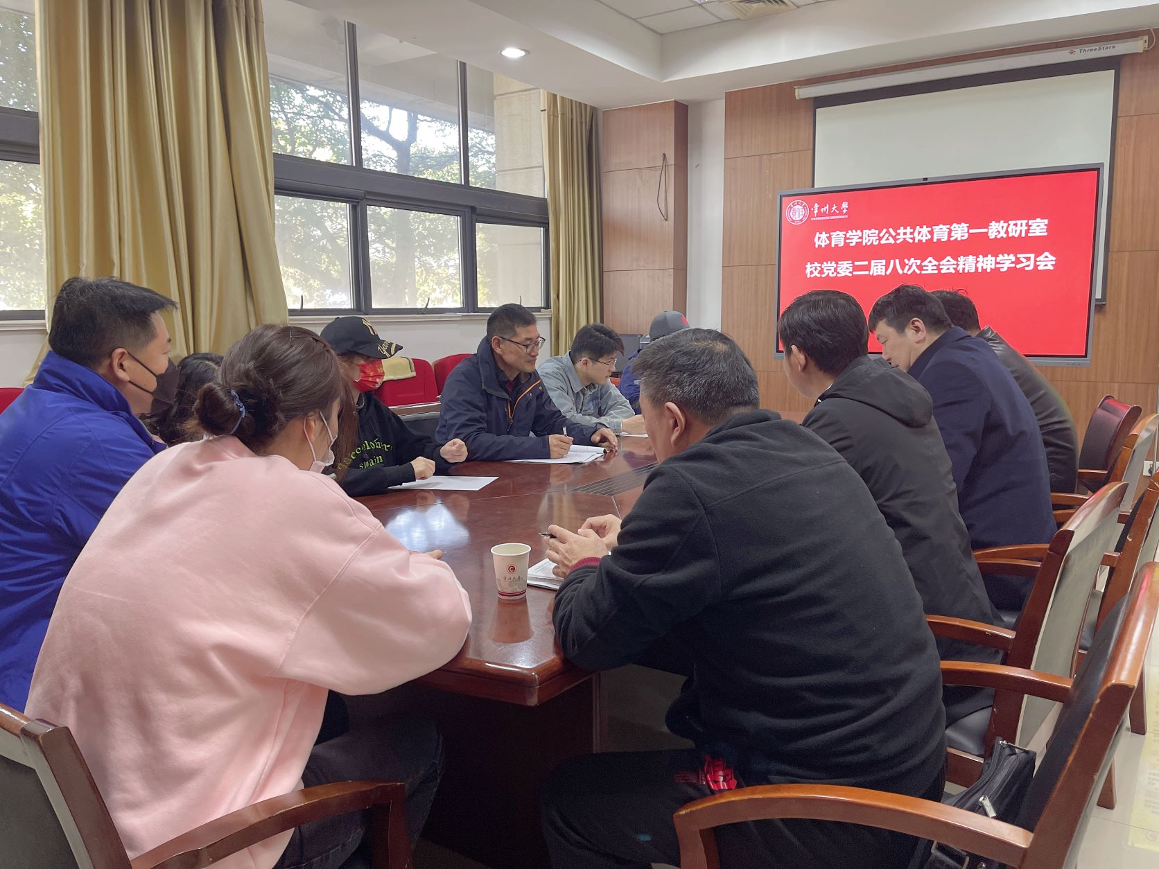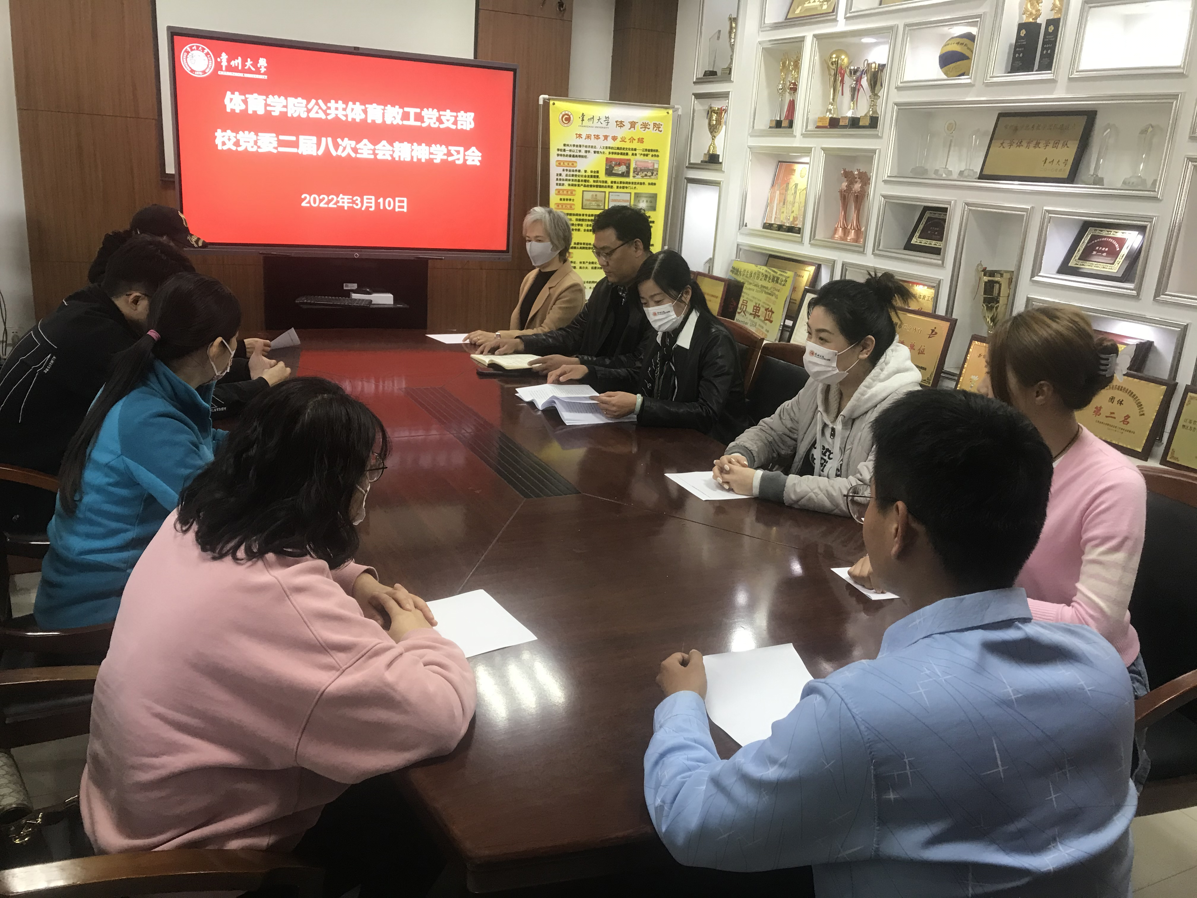 为深入学习贯彻校党委第二届委员会第八次全体(扩大)会议精神,推动今年会各项工作稳步前进,根据学院党总支统一要求,公体、专业党支部和各个教研室进行了专题学习研讨。 各单位根据自身情况,主要学习校党委书记陈群所作的《坚定不移地推进高水平大学建设在培养时代新人、服务国家战略中强化使命担当》党委工作报告、校长蒋军成所作的《凝心聚力谋发展 砥砺奋进再出发 全面开启高水平大学建设新征程》行政工作报告和校纪委书记邱正祥所作的《监督保障执行 促进完善发展 为奋力开启高水平大学建设新征程提供坚强政治保障》纪检监察工作报告。 活动中重点提到“黄大年精神”,指出教育工作者都应该向黄大年同志看齐,秉承其高尚精神,牢记为党育人、为国育才的初心使命,把立德树人贯穿教育教学过程中,当好学生的引路人,始终牢记在教育工作中体现培养什么人、怎样培养人、为谁培养人这一根本问题。 作为一线体育教师应当坚决扛起“争当表率、争做示范、走在前列”光荣使命,坚持为党育人、为国育才初心不动摇,坚持服务国家战略需求使命不动摇。