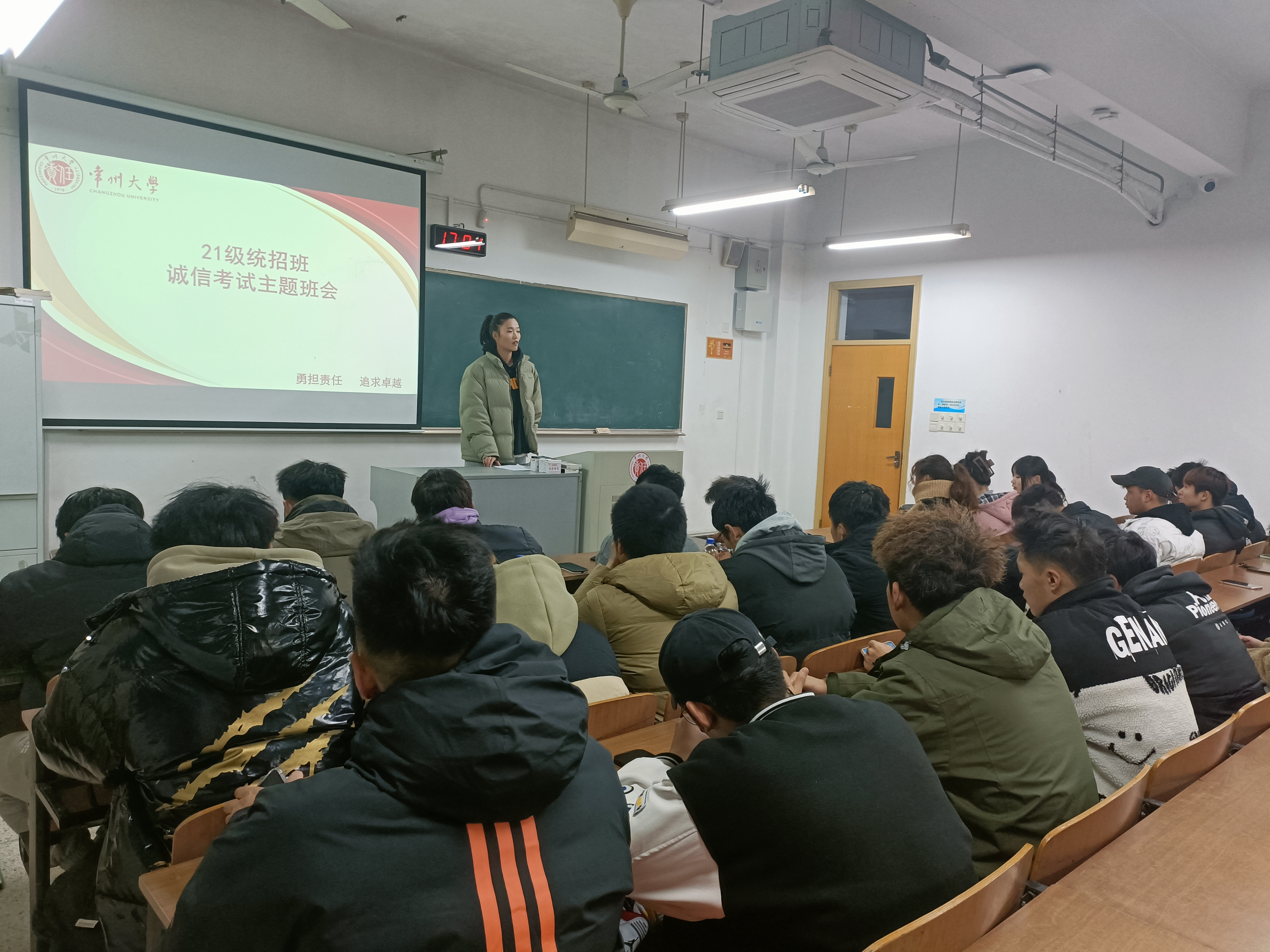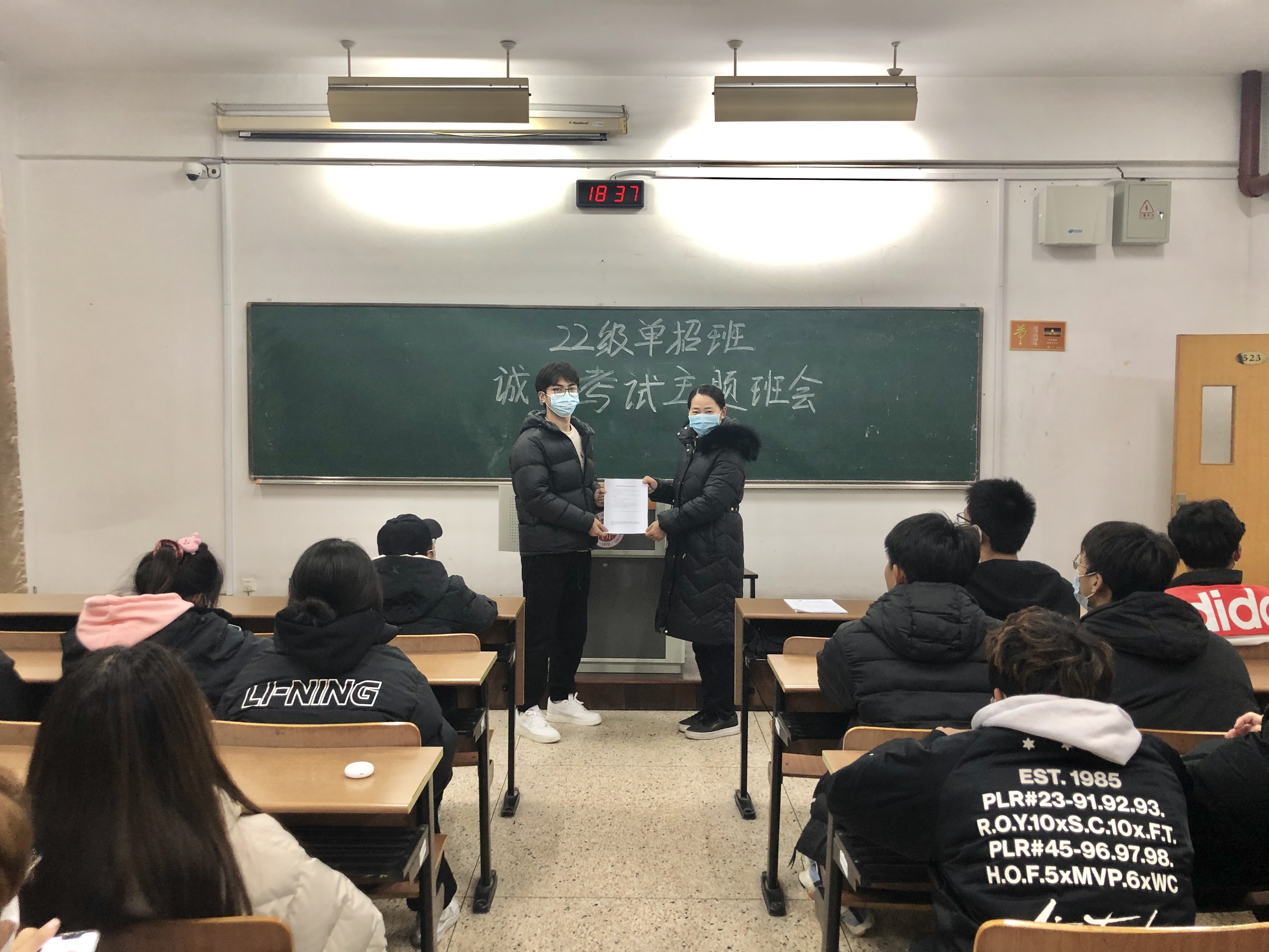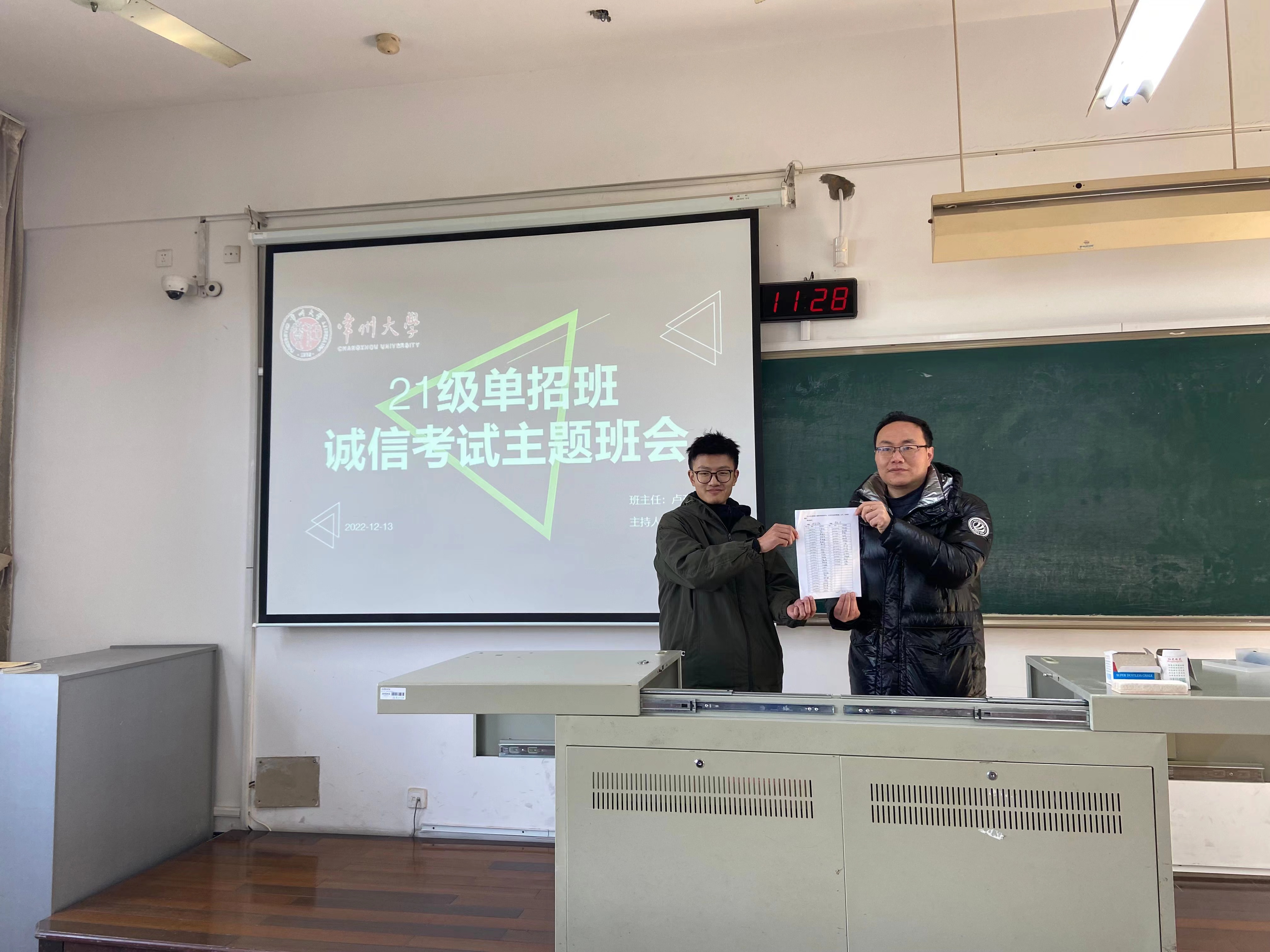 根据院“学在常大 体育青春”2022年学风建设月总体安排,树立良好的学习风气,培养同学们诚信考试观念,以积极的状态迎接考试。12月8-12日,今年会在全院范围内开展“诚信考试”主题教育班会。各班班主任、全体在校生参与此次主题教育班会。 班会上,各班主任老师以诚信考试的实际意义为切入点,列举了部分常见的作弊行为,以此分析学生考试作弊的主观因素,进而引导同学们树立正确的价值观念;带领同学们认真学习了《高校学生行为准则》、《普通高等学校学生管理规定》、《今年会官方网站学生违纪处分(处理)办法》等有关课程考核违纪、作弊的认定和管理的规定;随后,每位同学签写《今年会jiannianhui学生诚信考试承诺书》,自觉抵制作弊行为,遏制作弊思想,遵守考场纪律,在接下来的学习中认真备考,用实力为自己的努力赢得满意的回报。 本次诚信考试教育班会是今年会推进学风建设的重要举措,旨在端正考风,严肃考纪,增强学生的诚信考试意识,营造良好有序的考试氛围,引导学生诚信考试、诚信做人。