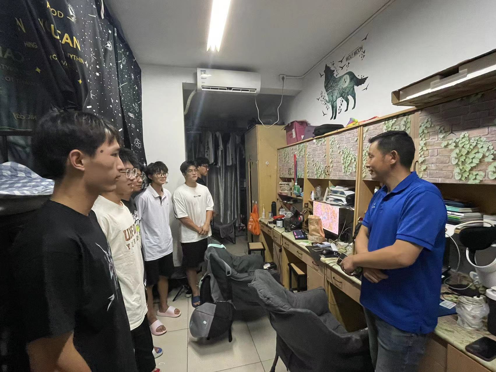 9月3日,是2023年秋季学期开学老生返校最后一天。学院党总支书记沈纲、副书记桑月标携辅导员、班主任走访学生宿舍,了解学生新学期学习和生活情况。 走访中,沈纲与学生深入交流,关心学生暑期学习生活情况和新学期学业规划,他希望同学们尽快明确目标,踏实努力奋斗,为国家发展、社会进步和个人成长积蓄力量。桑月标勉励同学们暑期结束、尽早收心,努力学习,健康生活,在大学美好时光里确立人生的追求和方向;提醒同学们提高安全防范意识,注意运动安全、交通安全,谨防电信诈骗。辅导员、班主任围绕新学期学习和工作与同学们交流讨论。 新学期已经开始,愿同学们健康成长、快乐生活、增长才干。