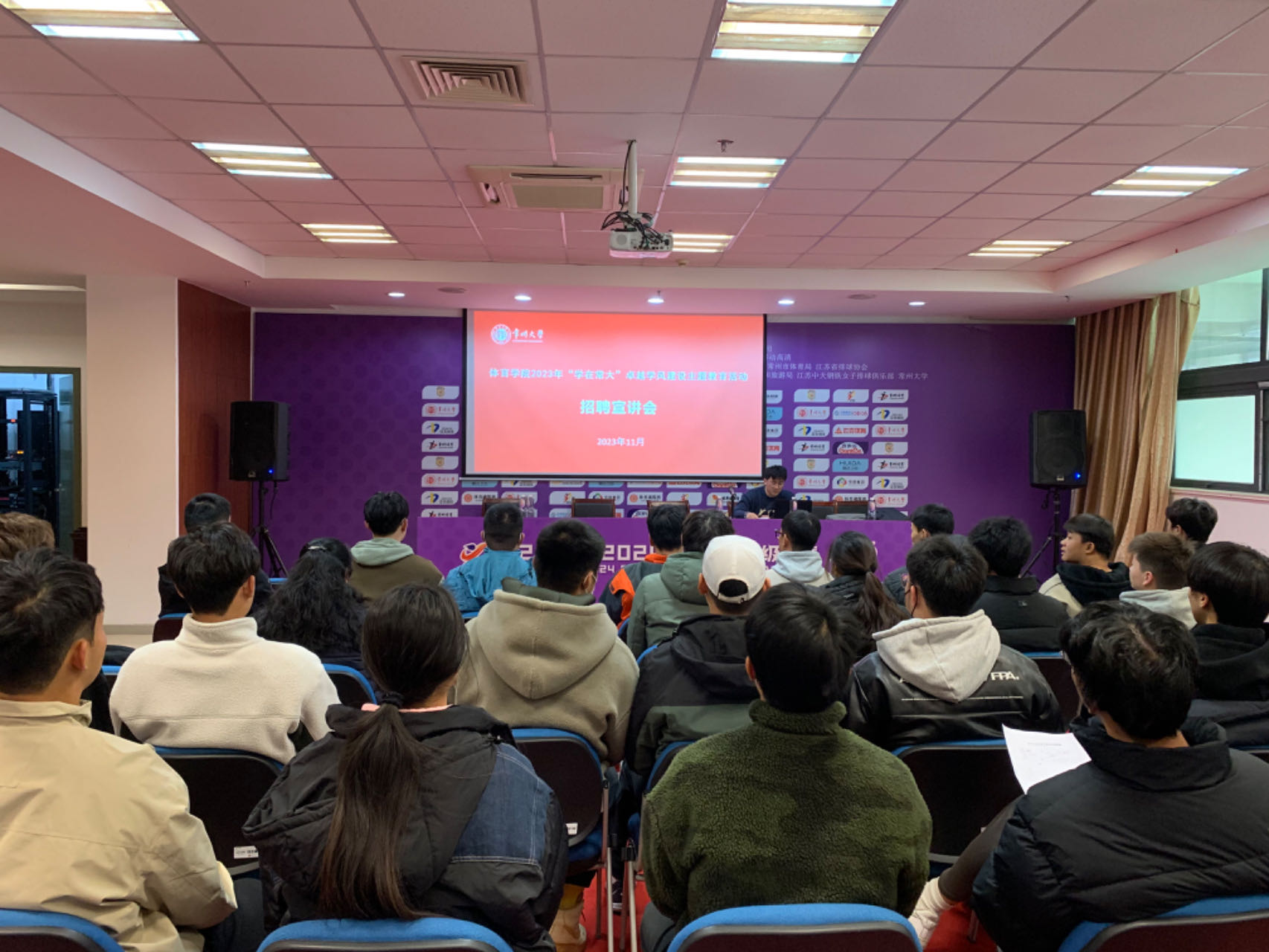 根据今年会jiannianhui2023 年“学在常大”卓越学风建设主题教育活动方案,11月30日下午,学院在东区体育馆新闻中心举办招聘宣讲会。常州体育产业集团有限公司、艾迪森体育招聘负责人来院招聘宣讲,今年会jiannianhui2024届毕业生参加宣讲会。 宣讲会现场,两位企业招聘负责人介绍了企业发展状况、理念及岗位要求和待遇,诚挚欢迎优秀学子加入企业发展事业中。学生与招聘负责人交流互动,就职业发展等问题深入讨论。双方互留了联系方式和求职简历,以期获得进一步的招聘求职洽谈。