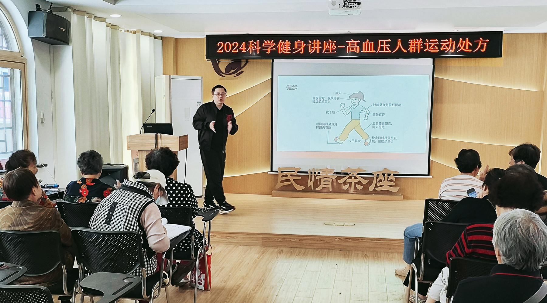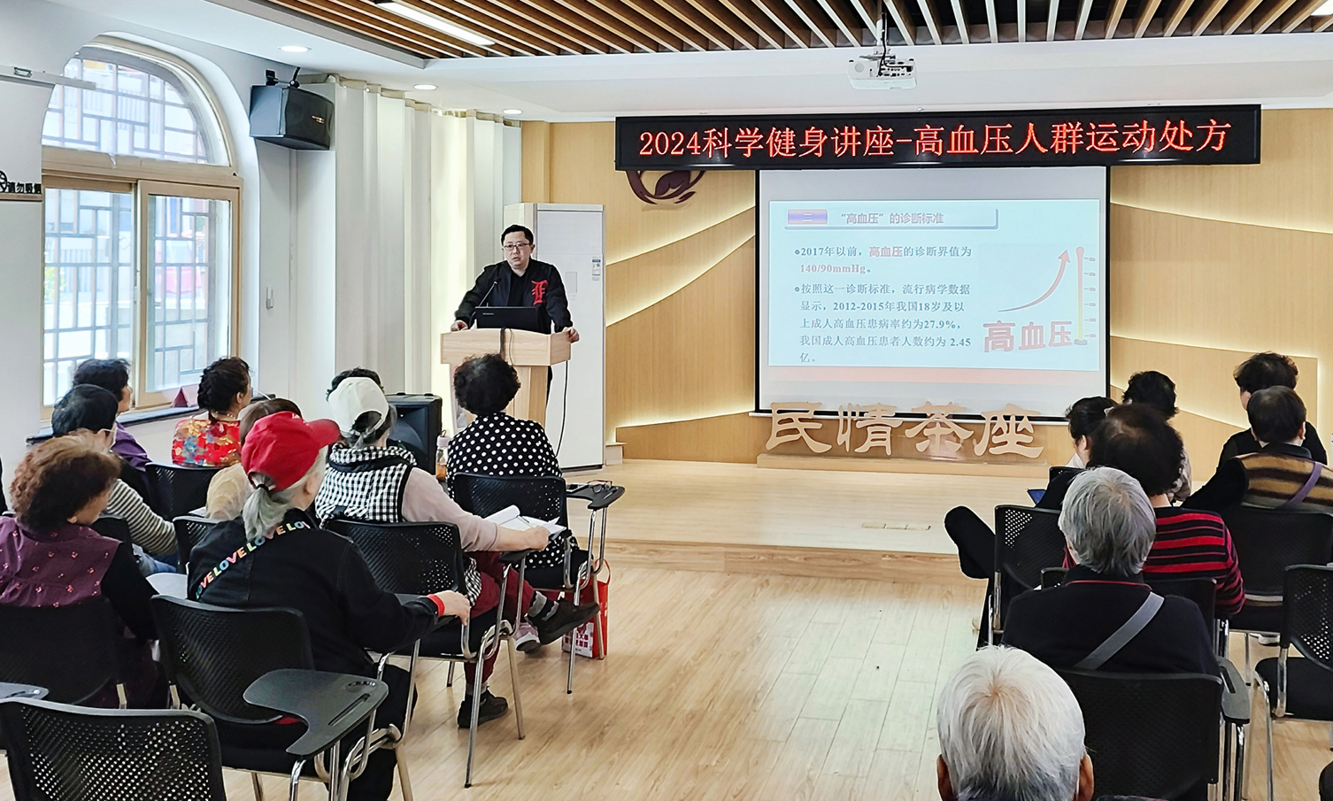 5月10日上午,今年会专业教研室教师陈金鳌副教授作为常州市“运动健康大讲堂”专家团主要成员,受邀为常州市天宁区兰陵街道工一社区老年居民作了题为《老年高血压人群运动处方》的健康科普讲座。讲座以高血压对老年人的危害为背景,首先明确了高血压的临床诊断标准,进而介绍了运动对高血压的防治作用,最后围绕高血压人群的运动疗法、适宜老年高血压人群的运动方式以及老年高血压人群运动注意事项等内容进行了重点宣讲与现场动作示范,现场气氛热烈,掌声不断,受到了一致好评。