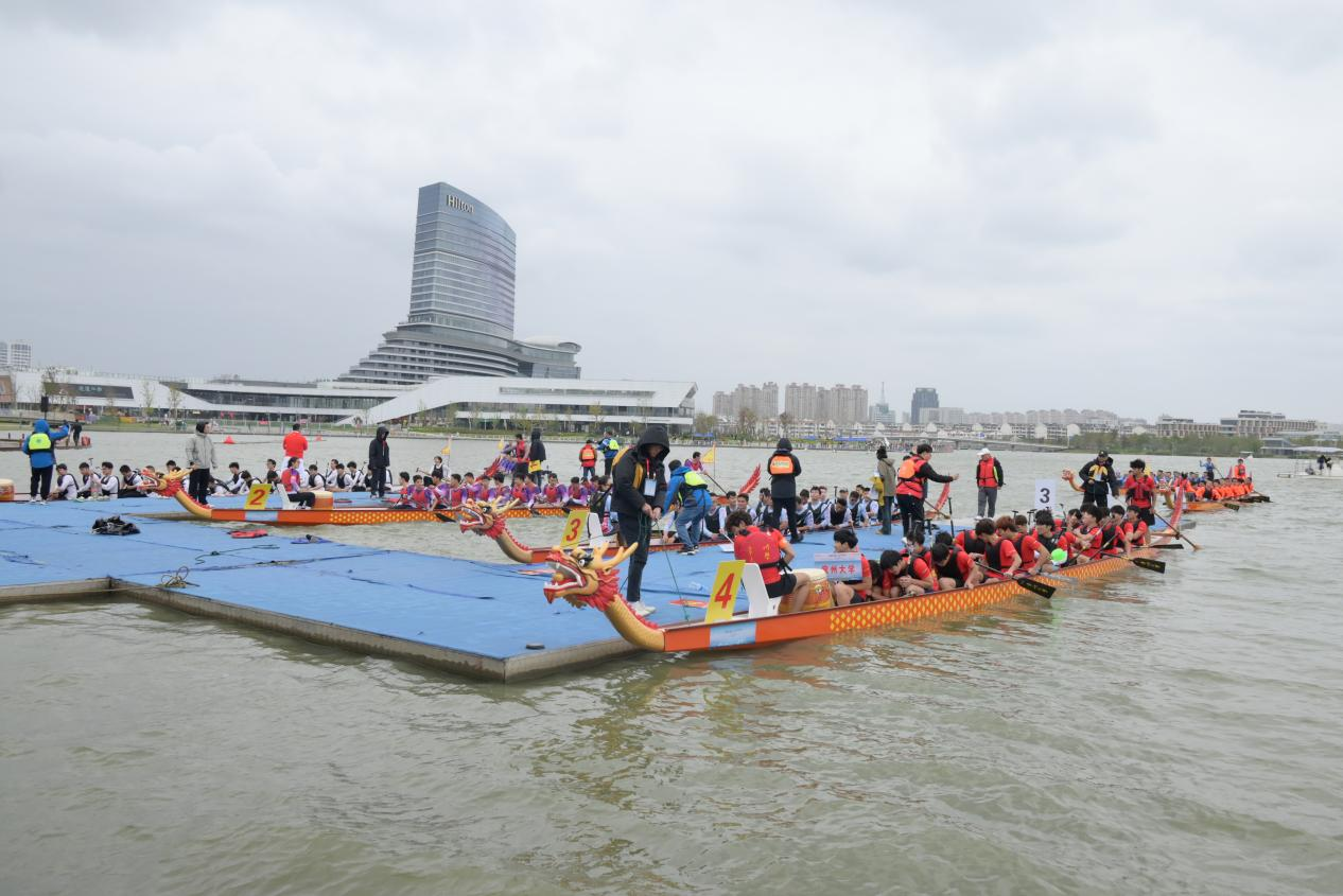 比赛现场,来自不同地方的龙舟队整齐列阵。常大队员们身着红色短袖的队服,眼神中透着坚定,那是对胜利的渴望。溅起的水花打在他们的脸上、身上,寒意阵阵袭来,但他们就像无畏的战士。