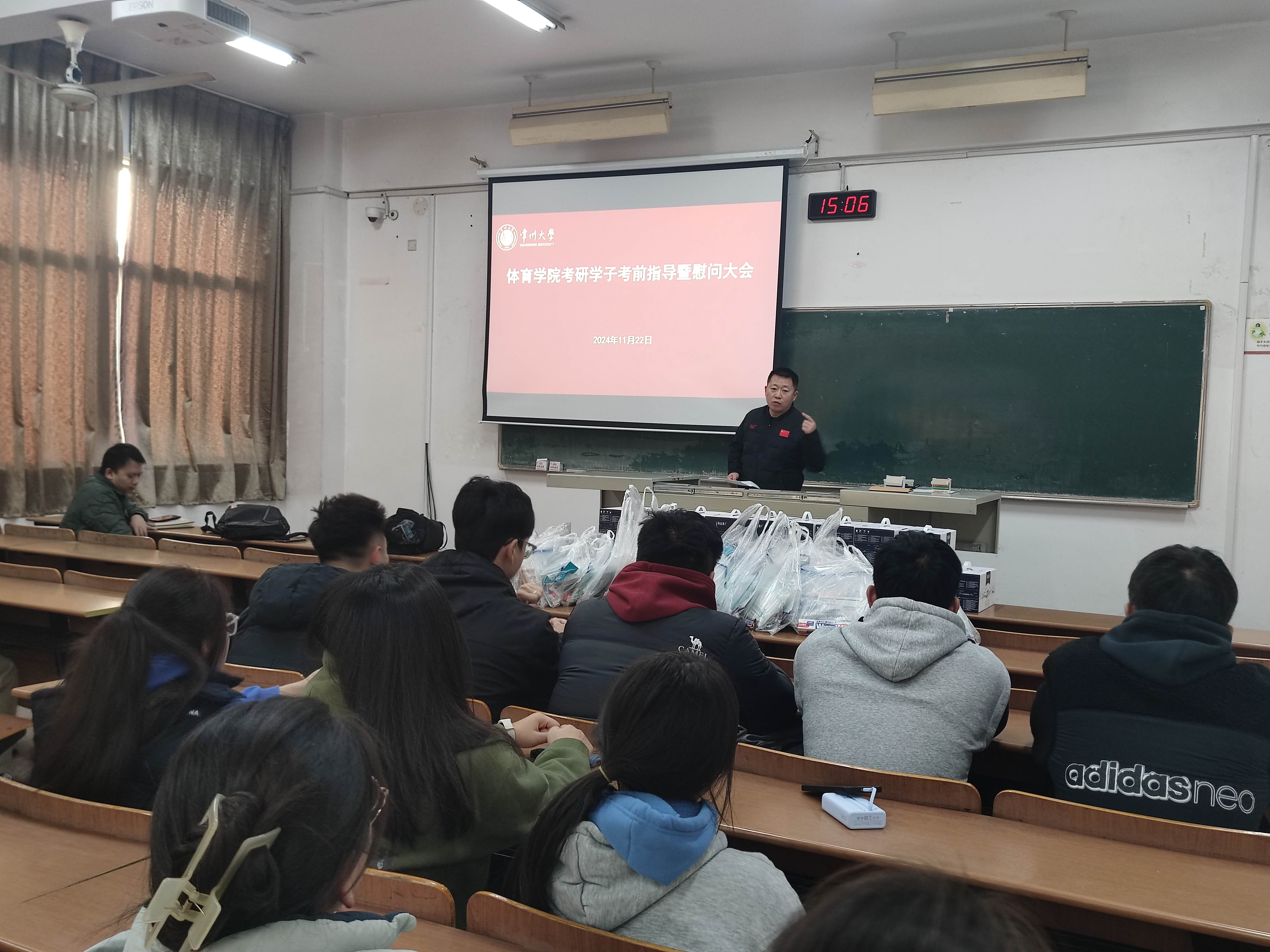 沈纲表示,学院一直高度重视学生的升学与就业工作,密切关注考研动向,致力于为学生提供全方位的备考支持和保障。他叮嘱同学们要继续锚定目标,在考研道路上要越走越坚定;要继续坚持不懈,用坚强的意志和毅力赢得这场考验;要劳逸结合,通过适当的体育运动释放压力,不必刻意加码,增添身心负担。