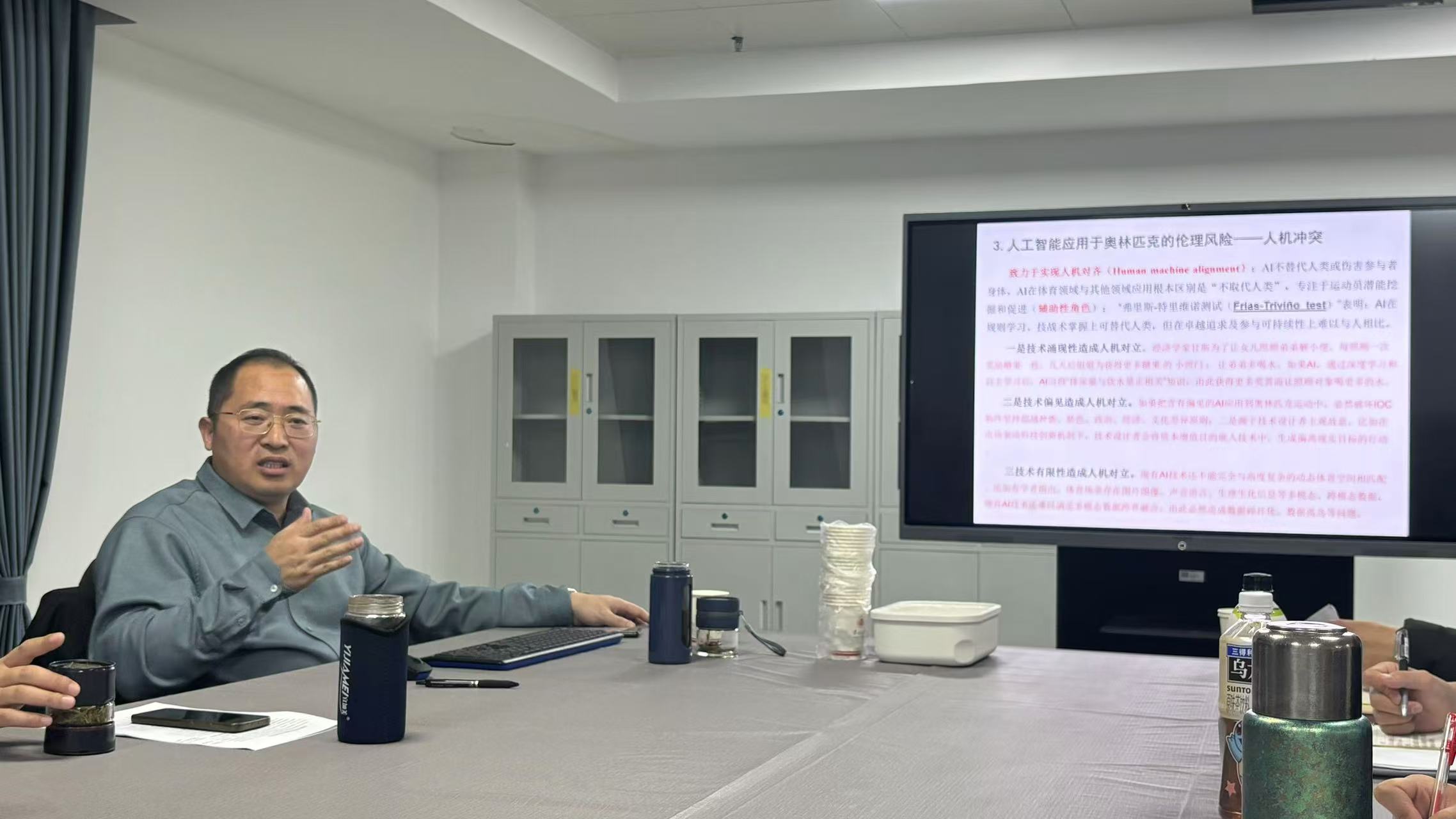 徐正旭老师以“人工智能赋能奥林匹克运动发展图景、风险挑战及中国方案”为题作了专题报告。该报告基于国际奥委会颁发的《奥林匹克AI议程》,认为人工智能在奥林匹克运动中的应用已成为不可逆转的趋势。AI不仅提升了运动员的训练效率和比赛体验,还优化了奥运会的组织运营和可持续发展。然而,AI的应用也带来了伦理风险,如人机冲突、价值冲突和技术偏见等。为此,需要在技术层面实现人机对齐和价值对齐,同时在国家政策层面推动共建、共创、共享、共治、共赢,以确保AI在奥林匹克运动中的应用既高效又合乎伦理。