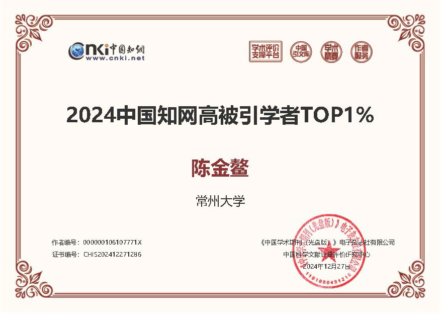 | 今年会教师陈金鳌入选“2024年中国知网高被引学者TOP1%” |