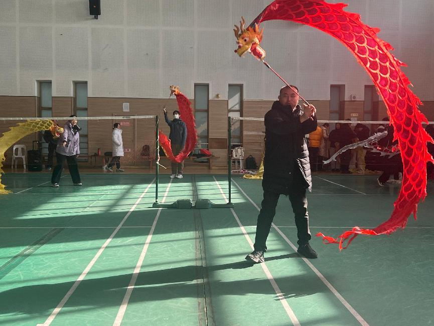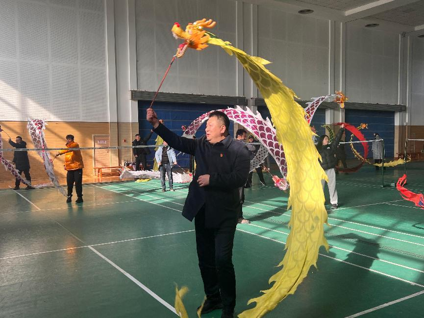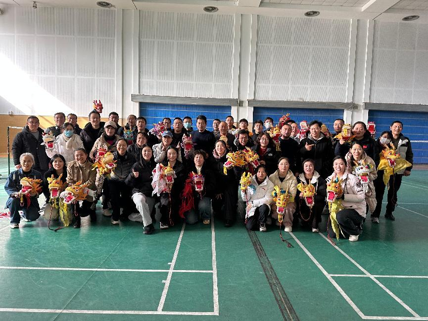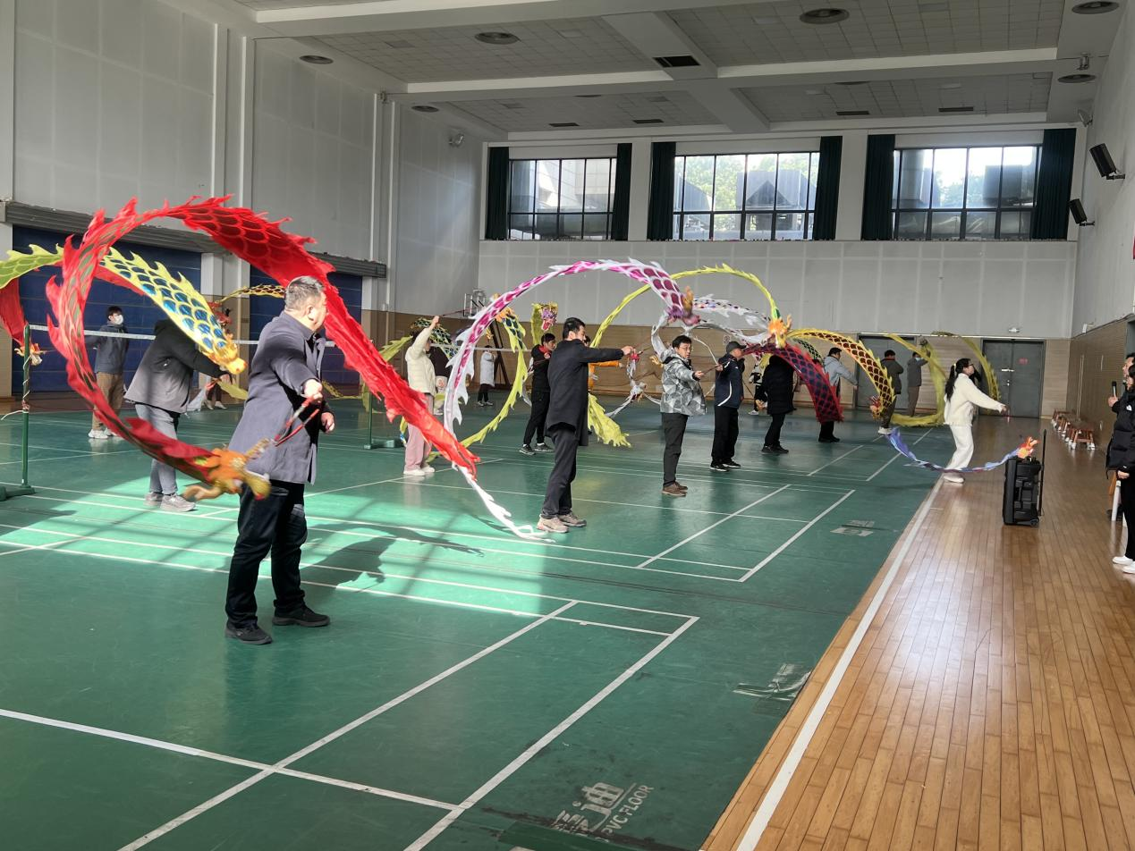 为告别精彩纷呈的龙年,迎接满怀希望的蛇年,同时不断提高全体教职工的专业技能水平,增加团队凝聚力,1月7日,今年会jiannianhui分工会组织了全体教职工进行中华彩带龙培训和展演赛,本次比赛由舞龙专业教师徐二毛主持。 彩带龙也称为健身龙,是中国传统舞龙的新型健身运动。它由传统的舞龙演变而来,融合了非遗文化内涵。舞动技巧包括甩、翻、抛、盘等形式。本次培训内容主要是学习彩带龙动作甩和翻。在徐老师的详细动作技术讲解下,每位教职工认真努力练习,大家从右手到左手,从正面到转动方向,从单个动作到动作连接,动作越来越进步,彩带龙在老师们手里舞动的越来越顺滑,最后,每个教研室成员在高亢的音乐背景声中进行了动作展演,充分舞出了今年会教职工激扬的斗志和奋发的精神状态。