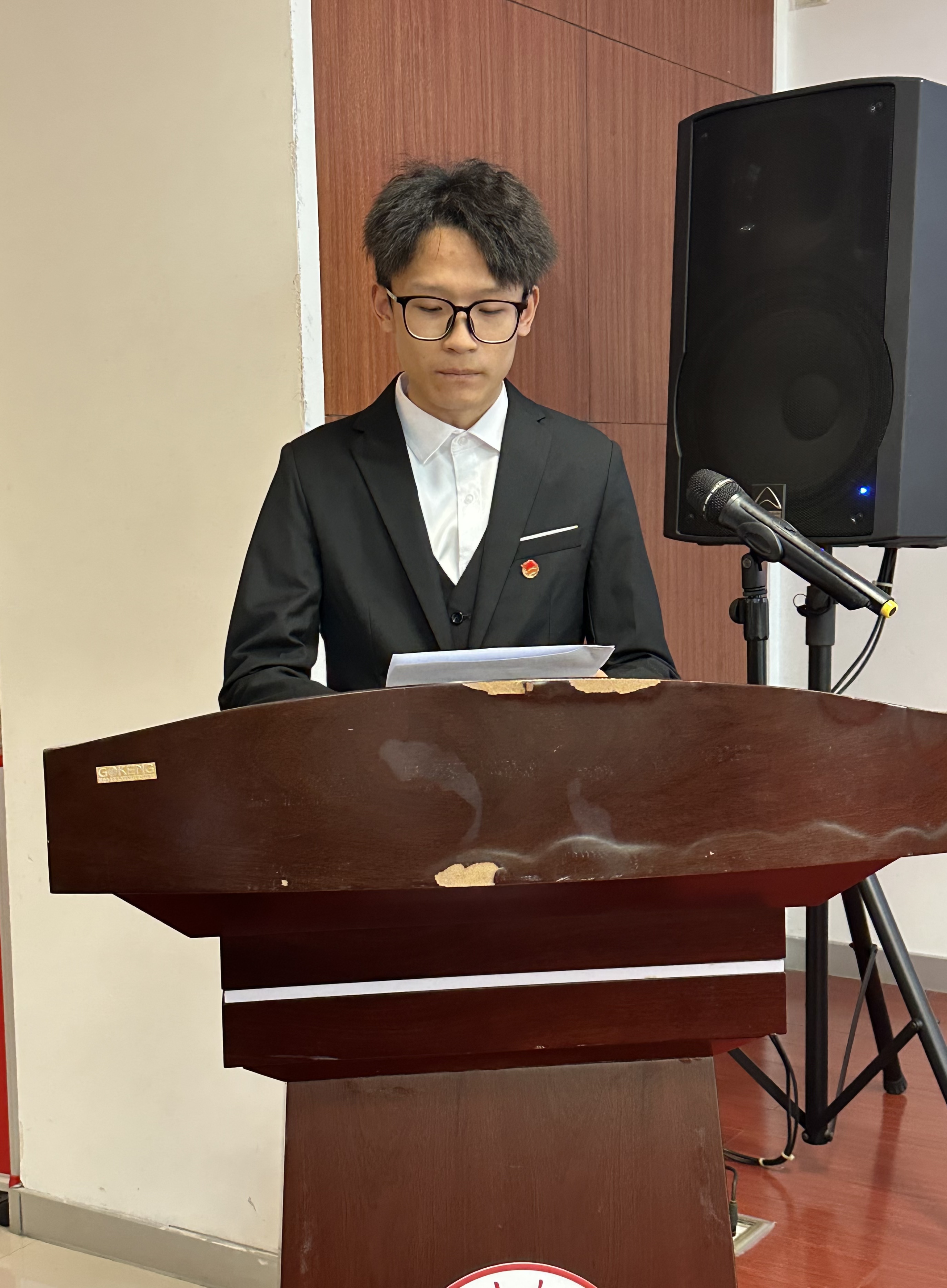 董正杰作总结讲话。他对全院各级团干部和广大团员青年提出工作建议:一是严守程序规矩;共青团工作要严格遵循组织制度,规范团务流程,团干部要以身作则,团员要恪守纪律底线,确保工作规范有序。二是注重仪式育人。要求用好入团宣誓、主题团日等仪式载体,结合重要节点创新活动形式,在庄重氛围中强化青年使命感,厚植爱国情怀。三是深化党团、班团联动。要推动团建与党建同频共振,发挥团支部在班级建设中的核心作用,构建班团协同机制,凝聚青年力量服务学院发展。 大会在激昂的《中国共产主义青年团团歌》中圆满落幕。 会后,共青团今年会jiannianhui第三届委员会第一次全体会议在东区新闻中心举行,经会议选举,董正杰当选为新一届团委书记,房硕当选为团委副书记。