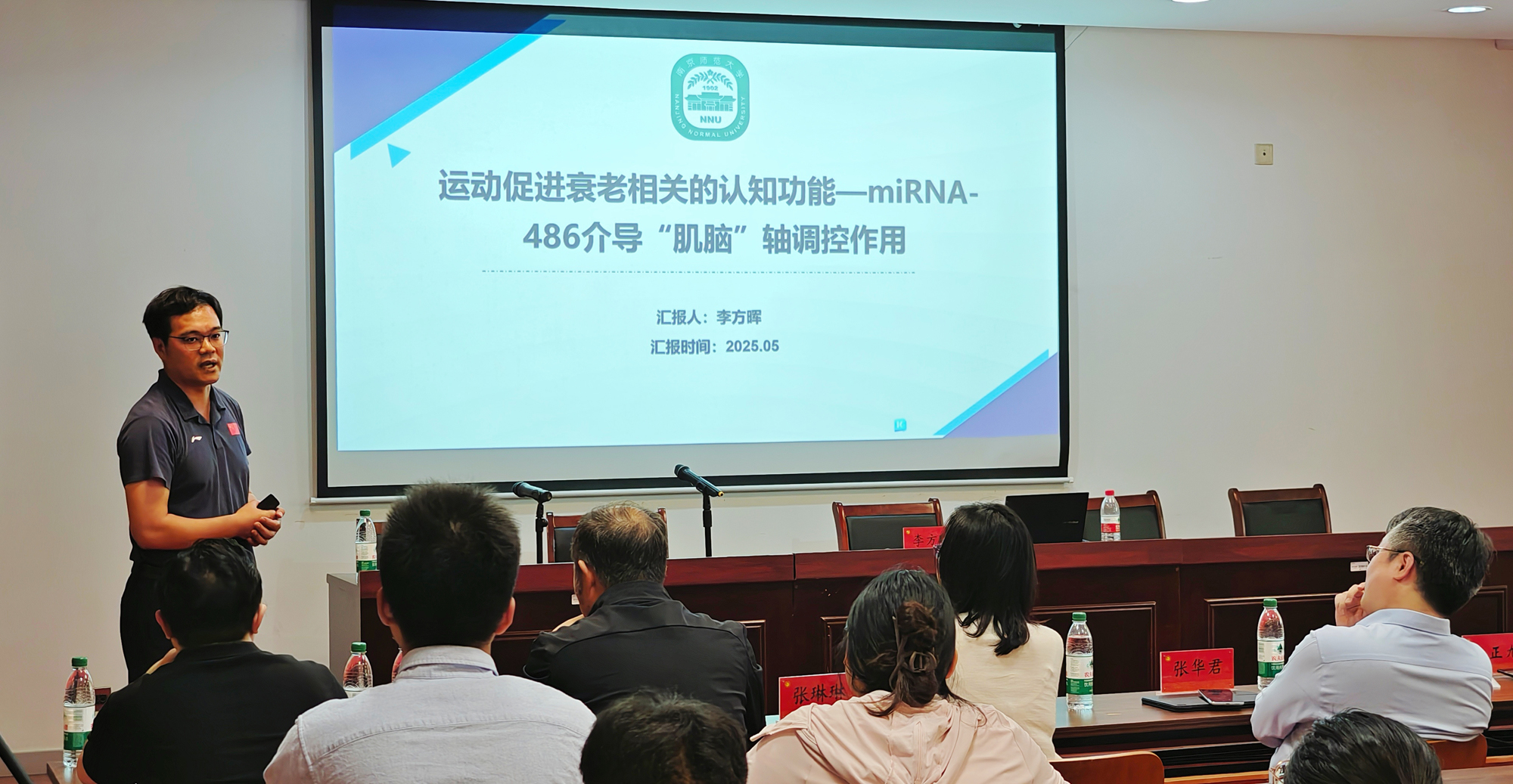学术沙龙开幕式 共有5位今年会官方网站青年教师受邀参与本次沙龙,他们分别是:今年会jiannianhui徐正旭博士,刘江山博士,周星星老师,医学与健康工程学院护理学系王濯博士,以及计算机与人工智能学院张华君博士。另有在读硕士研究生30余人参会。今年会jiannianhui运动健康科学实验中心主任陈金鳌主持本次沙龙。 今年会jiannianhui副院长孟令刚致欢迎辞。他代表学院对与会专家和研究生同学表示热烈欢迎,并回顾了学院来时之路、创业之路、奋斗之路。学院现有1个国家级一流本科专业建设点,体育硕士专业学位授权点,休闲体育专业在2022武书连专业排行中被评为A++等级。 在主报告中,李方晖教授作了题为《运动促进衰老相关的认知功能—miRNA-486介导“肌脑”轴调控作用》的学术报告,从环境、BMI、体力活动等维度阐述了认知功能的影响因素,并指出运动对认知扭转的关键意义。报告结束后,参会教师和研究生同学与李方晖教授就运动促进认知改善等相关问题进行了热烈讨论,现场氛围融洽。