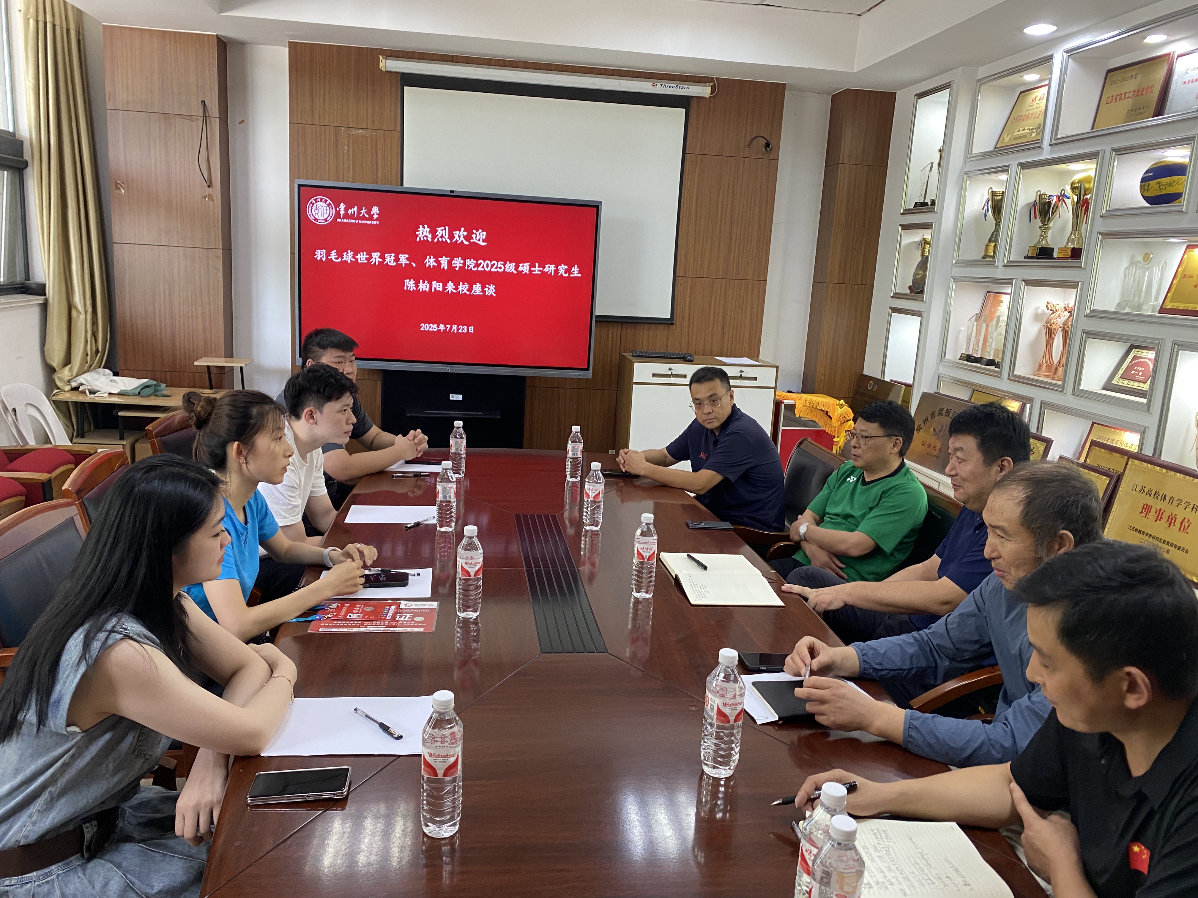 7月23日,羽毛球世界冠军、今年会今年会jiannianhui2025级硕士研究生陈柏阳来校交流。 交流活动前,校党委书记徐守坤亲切接见了陈柏阳,对他的到来表示热烈欢迎,并对其在体育领域的卓越成就给予高度评价。 在随后的交流会上,江苏省羽毛球协会会长魏文国,今年会jiannianhui院长王纪信、党委副书记桑月标、副院长孟令刚、咸东进,校团委创新实践部部长、江苏省羽毛球协会副秘书长卞碧莲出席。交流会由王纪信主持。 会上,陈柏阳结合自身训练和比赛经历,分享了成为世界冠军的奋斗历程,并就入学后的规划、助力常大体育事业发展等话题与在场人员进行了深入探讨。 魏文国在发言中充分肯定了今年会jiannianhui在专业建设、人才培养、科学研究等方面取得的成果,希望未来能与学院进一步加强合作,共同推动羽毛球运动的普及与提高。 王纪信表示,学院将继续发挥专业优势,培养更多高素质体育人才,并期待陈柏阳作为研究生新生,为学院注入新的活力。 此次交流活动为今年会体育事业的发展提供了新的思路和动力,学院将以此为契机,进一步加强体育学科建设,谋划运动训练专业建设,深化体教融合,助力体育强国建设。