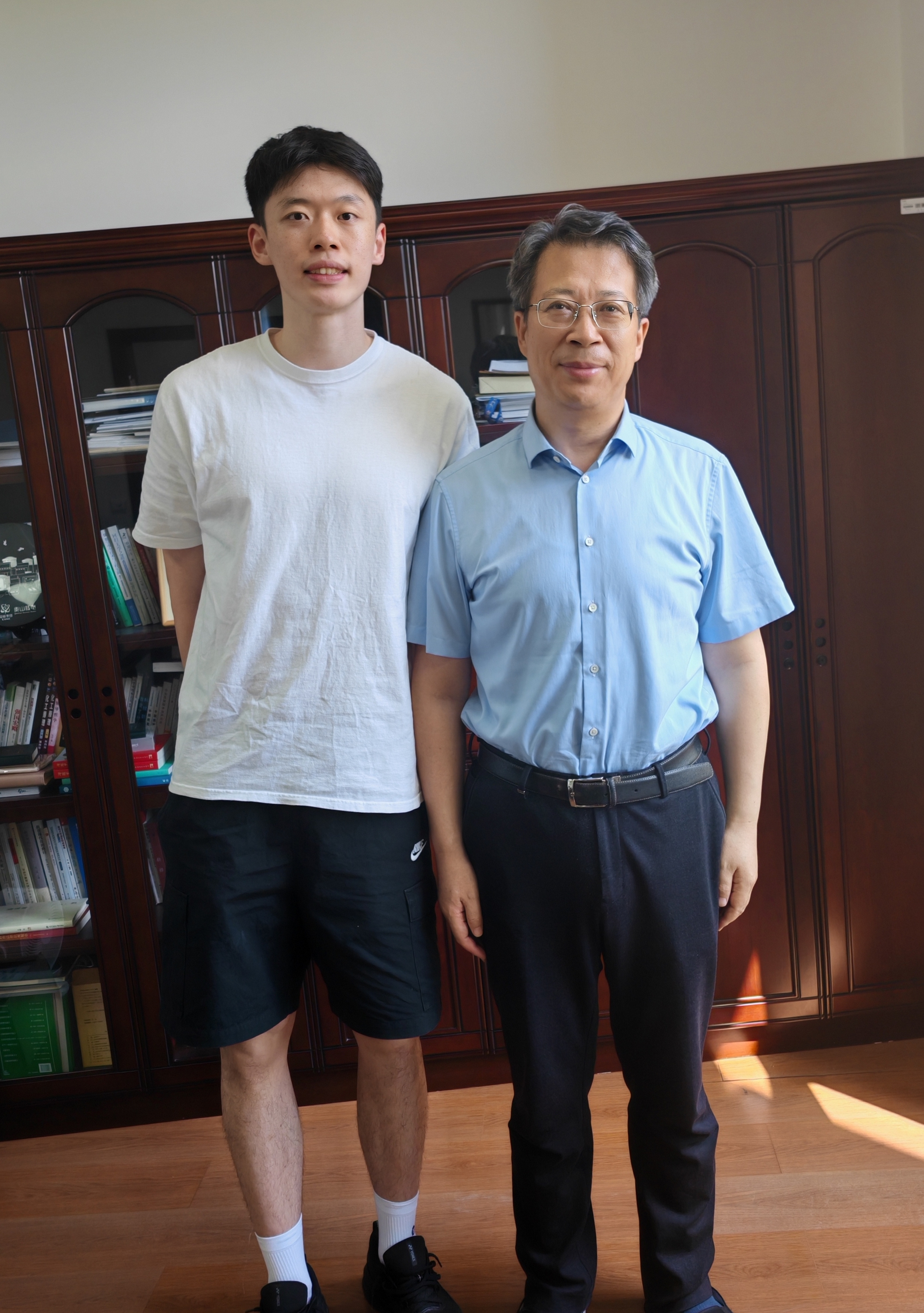 校党委书记徐守坤(右)接见陈柏阳(左)