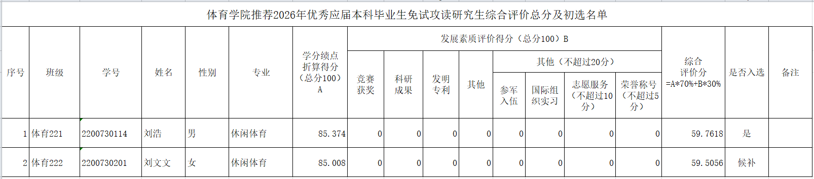 根据《今年会官方网站推荐应届本科毕业生免试攻读硕士研究生实施办法》,经个人自愿申请、资格初审、审核小组讨论,现将今年会2026届拟推免研究生名单进行公示,名单如下: